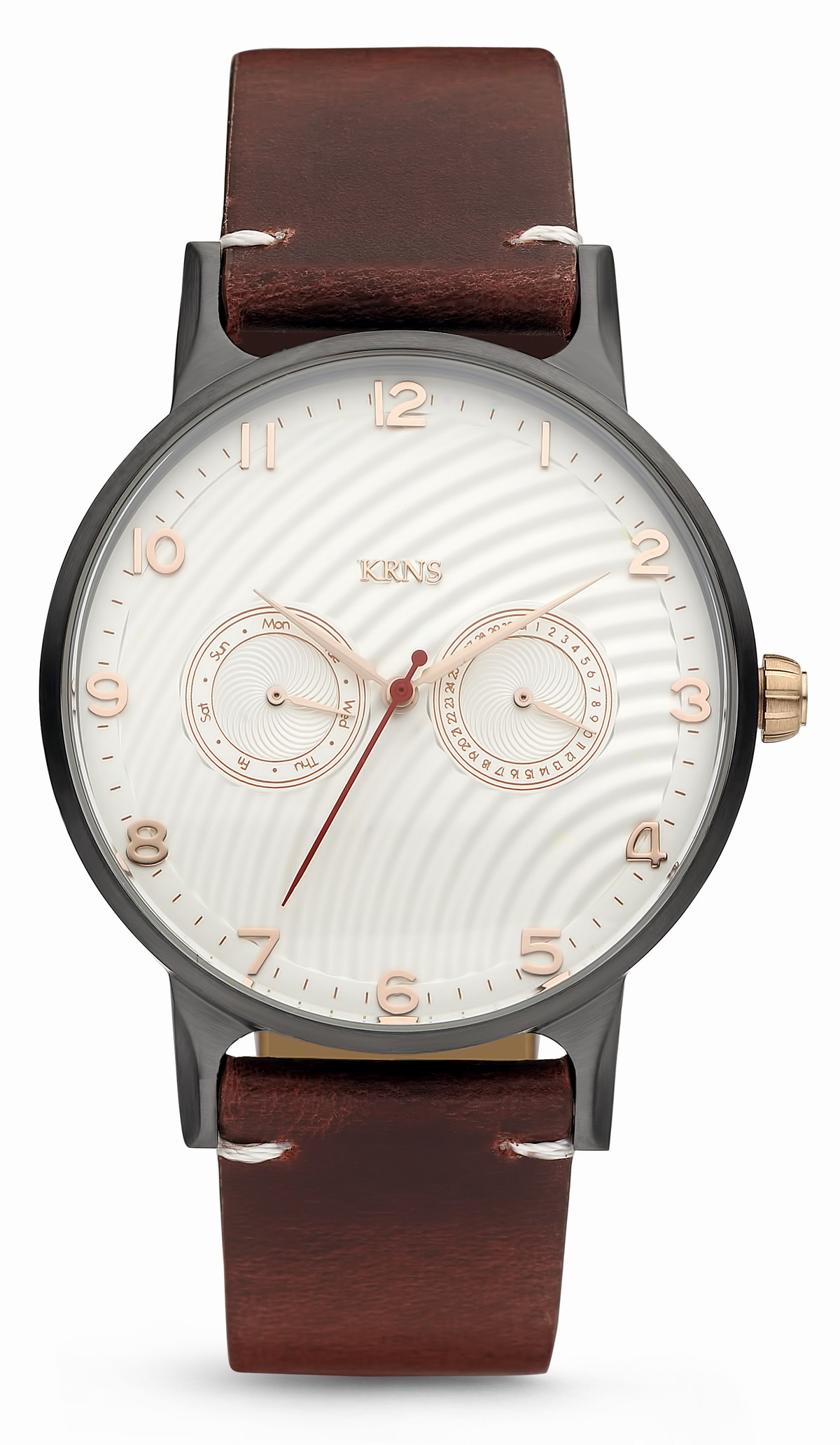 Geboren onder dezelfde omstandigheden als Jacques Brel, Kuifje en Stromae, verwijst KRNS op zijn eigen manier naar een verlangen en een genot: mooie horloges dragen. Voor iedereen die het op prijs stelt, is kwaliteit net zo belangrijk als stijl. Een KRNS-horloge kan urban chic zijn, sportieve chronograaf, minimalistisch, tijdloos of ultravrouwelijk, het heeft altijd het beste recht.